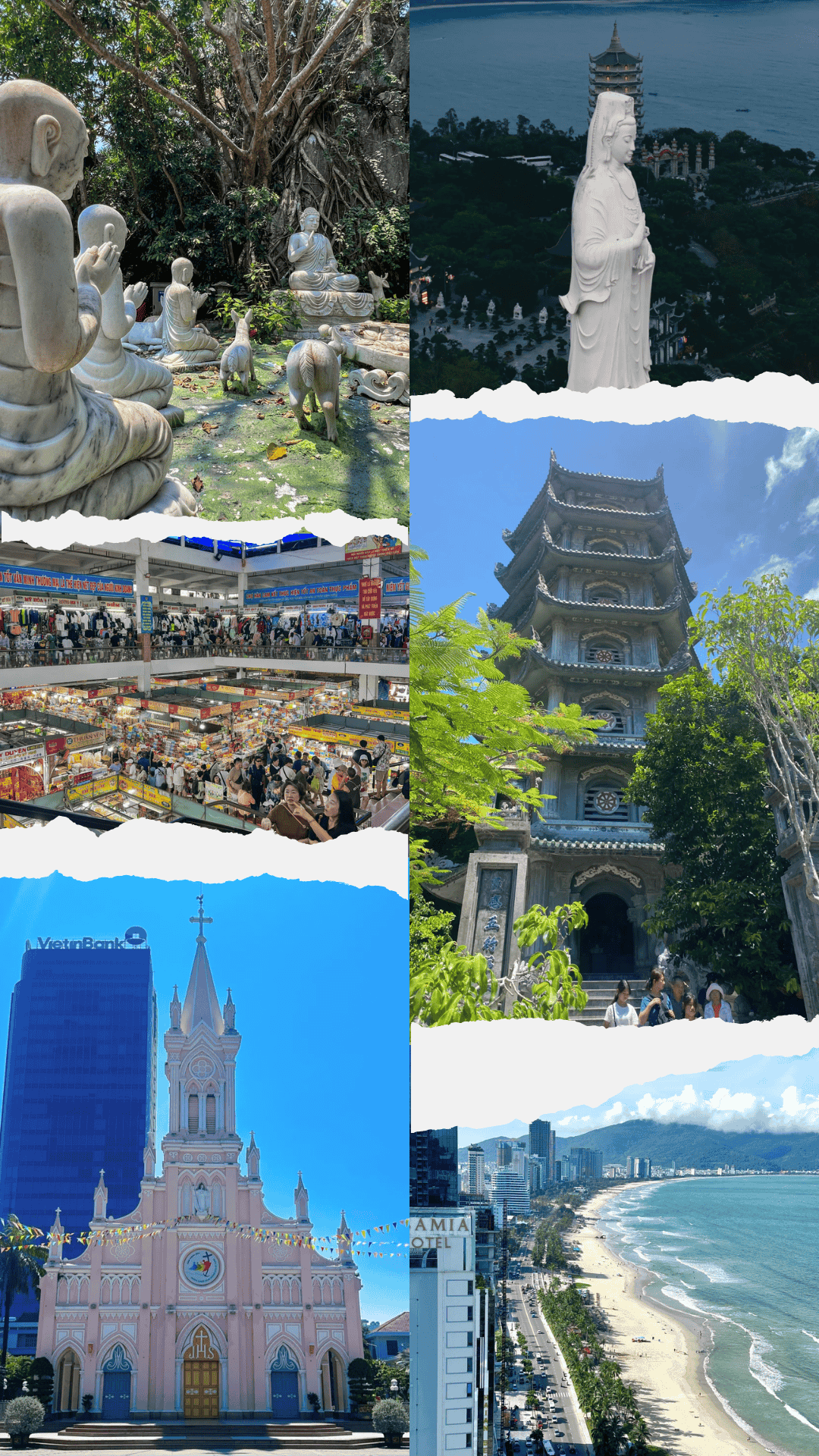 • 峴港風情:巴拿山金橋、靈應寺、五行山、山水石雕村、粉紅教堂、美溪海灘