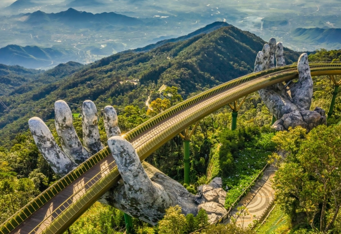 位於巴拿山的金橋,由佛手托起橋身,蜿蜒於雲海之間,被譽為世界最夢幻的步道。走在其上,腳下是山巒綿延,眼前是雲霧翻湧,彷彿走進雲端天堂。這裡是攝影師、旅人必訪的取景地點,無論是牽手合影,還是靜靜眺望遠方,都是一段難忘的記憶。