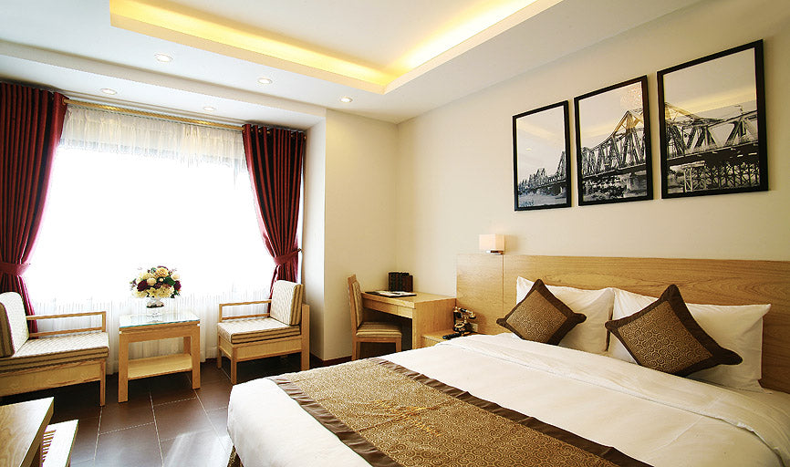 Reyna Luxury Hotel 為位於河內的四星級飯店,整體設計融合現代風格與舒適質感,營造沉穩放鬆的住宿氛圍。客房空間規劃實用且溫馨,適合旅客在城市觀光或商務行程後好好休息。飯店兼具便利性與住宿品質,是河內市區行程中安心且可靠的住宿選擇。
